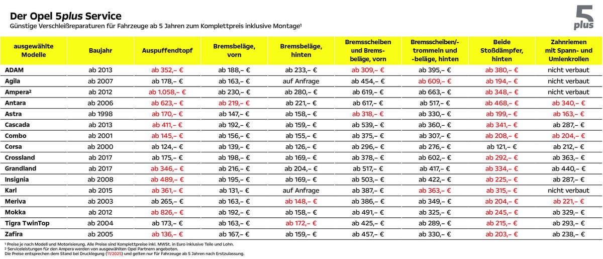 Also: Achten Sie jetzt immer auf die aktuellen Opel Service Komplettpreis-Angebote! Weitere Informationen erhalten Sie auf www.myOpel.de oder bei uns.